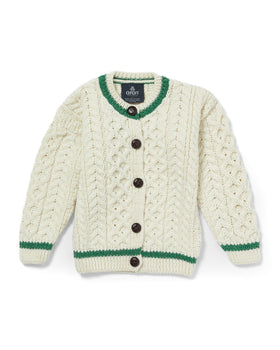 Sold out - Childrens Merino Wool Stripe Detail Button Cardigan by Aran Mills - Cream/Green