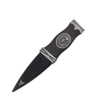 The sgian dubh is a small, single-edged knife that is worn as part of traditional Scottish Highland dress. Pronounced as a ‘ski-en doo’ knife, the sgian dubh blade is customarily worn by being tucked into the top of the kilt hose and positioned so that only the hilt is visible.