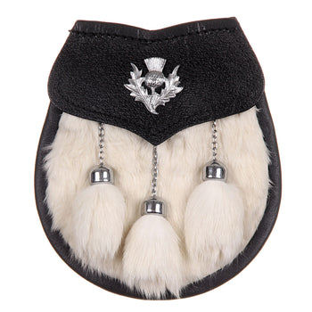Sold out - Semi Dress Sporran - White Rabbit Fur - Thistle Emblem