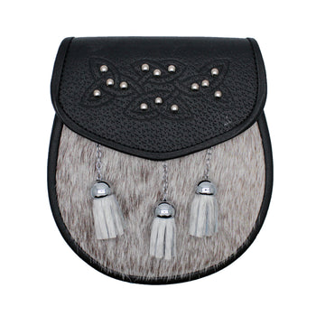 - Scottish Made - Semi Dress Studded Celtic Interweave Sporran - Grey Calfskin