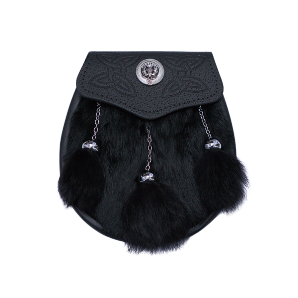 Black Rabbit Fur Thistle Semi Dress Sporran Made in Scotland