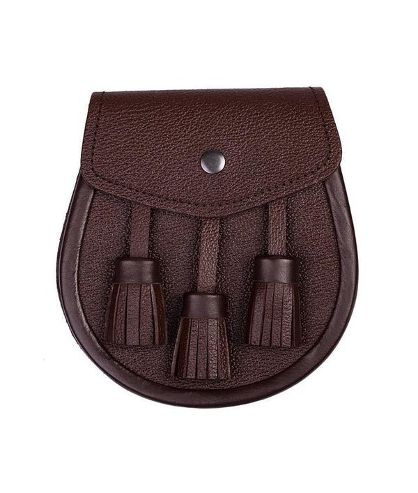 Brown leather day sporran with 3 tassels. Comes complete with chain.