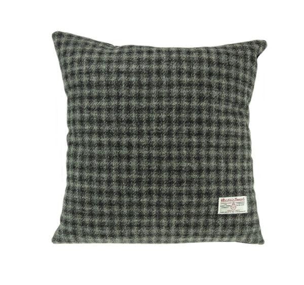 Genuine Harris Tweed Square Cushion in grey check with black back.