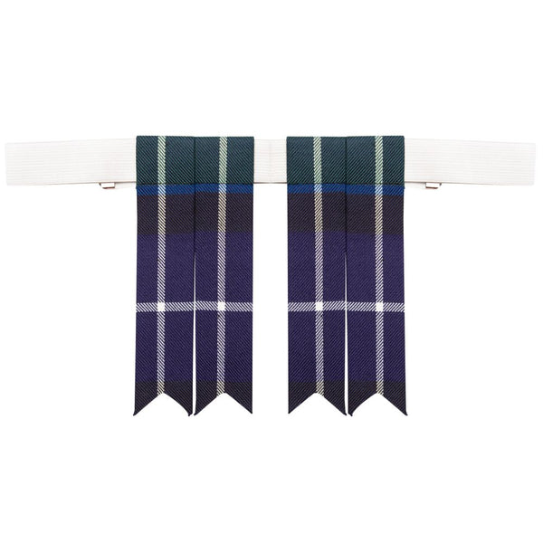 These Freedom tartan kilt hose flashes come with elasticated garters with velcro fastening. The garters can fit any adult leg size. The flashes are cut with traditional pointed ends.