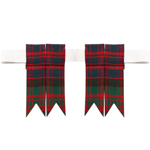 These tartan kilt hose flashes come with elasticated garters with velcro fastening. The garters can fit any adult leg size.