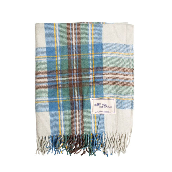 This 100% wool traditional Scottish Stewart Muted Blue tartan blanket, with fringed edges is very soft and warm. It can be snuggled under on cold nights, draped over you feet in front of the TV, used for picnics or as a travel rug and would also make a great housewarming gift. These popular blankets are cut to a smaller size, which makes them perfect for wrapping around your shoulders or, as the name suggests, over your knees.