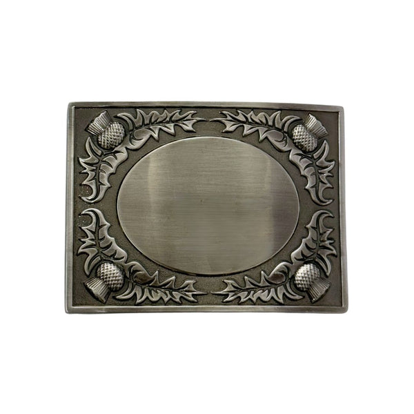 Really add that finishing touch to your kilt outfit with this Scottish thistle bordered chrome finished kilt belt buckle.