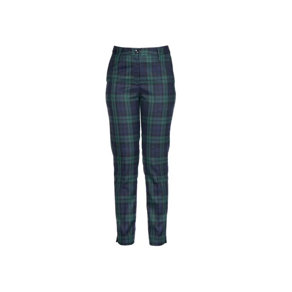 Ladies Polyester Tartan Trousers in Black Watch tartan with inside leg of 31 inches in a Straight Slim Leg Cut.